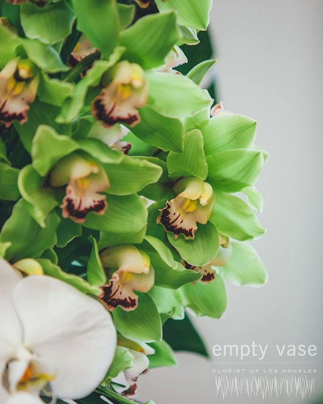 With their native habit high up in the trees of tropical forests, these aerial botanicals convey a sense of the mystical and other-worldly. Here, our designers have created a stunning contemporary arrangement that showcases the diversity of these extraordinary flowers. Enjoy a cascade of resplendent green Cymbidium orchids as they rise up alongside crisp white Phalaenopsis orchids. The arrangement rests in a rectangular glass vase.