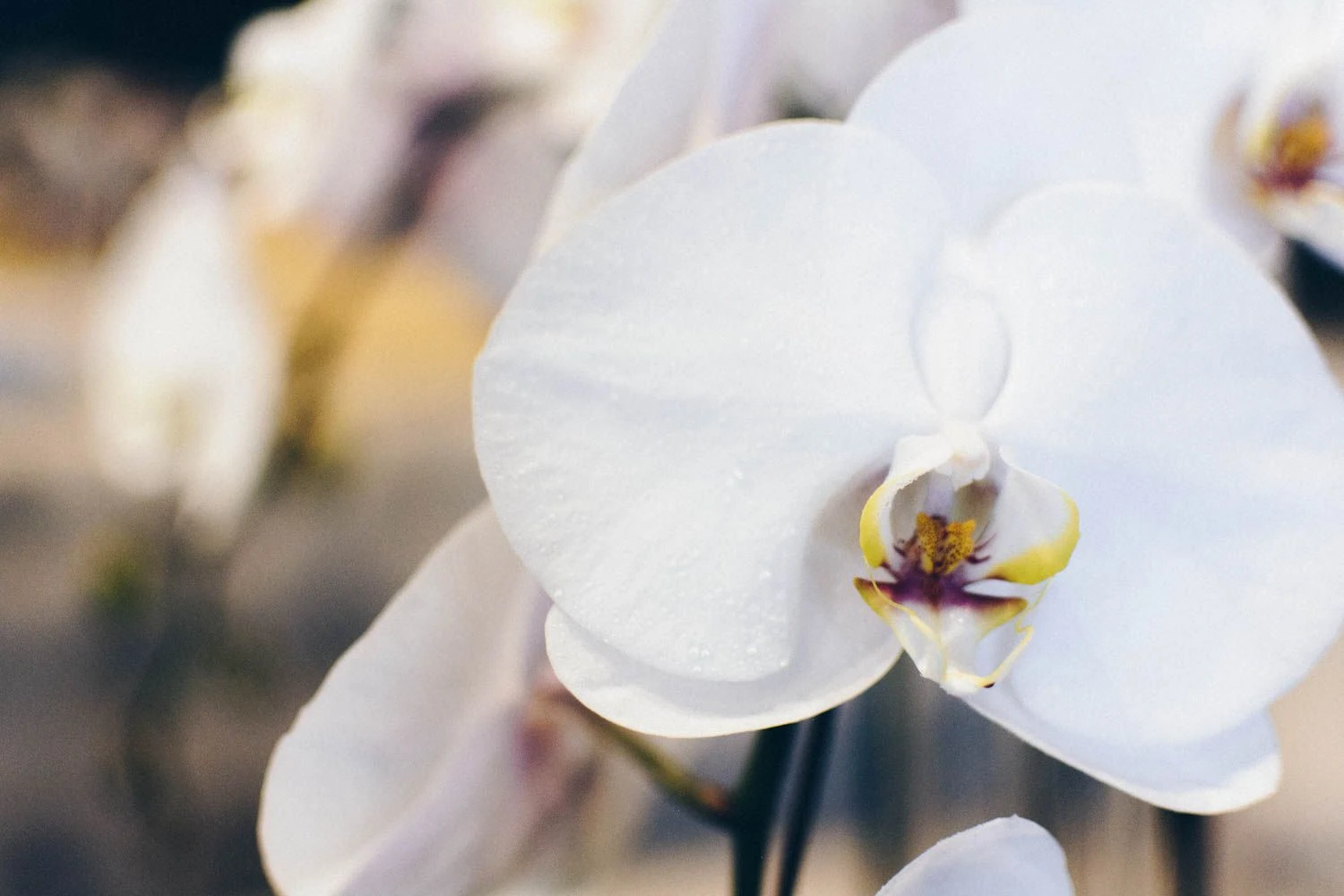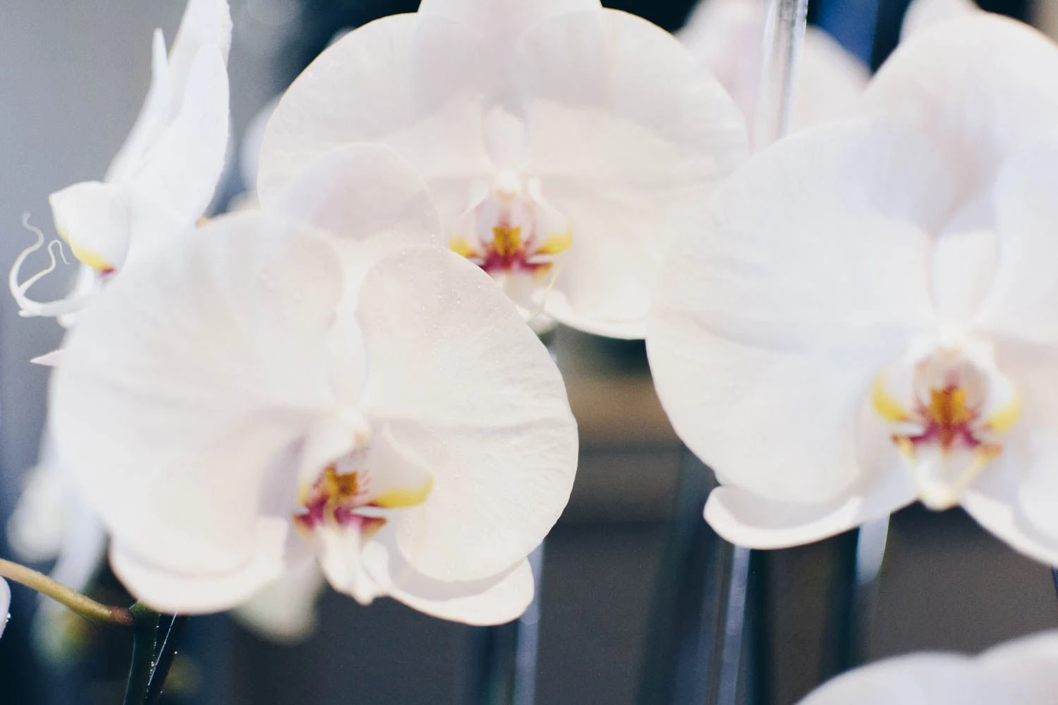This timeless beauty of a design features five sky high stems of crisp white phalaenopsis plants. All resting atop a 12″ tall glass cylinder vase lined with modern strips of white and black midolinno sticks and topped with smooth black river rocks and hand selected succulents, this grand design stands at approximately 37″ tall overall. Please note that orchids will vary in height.