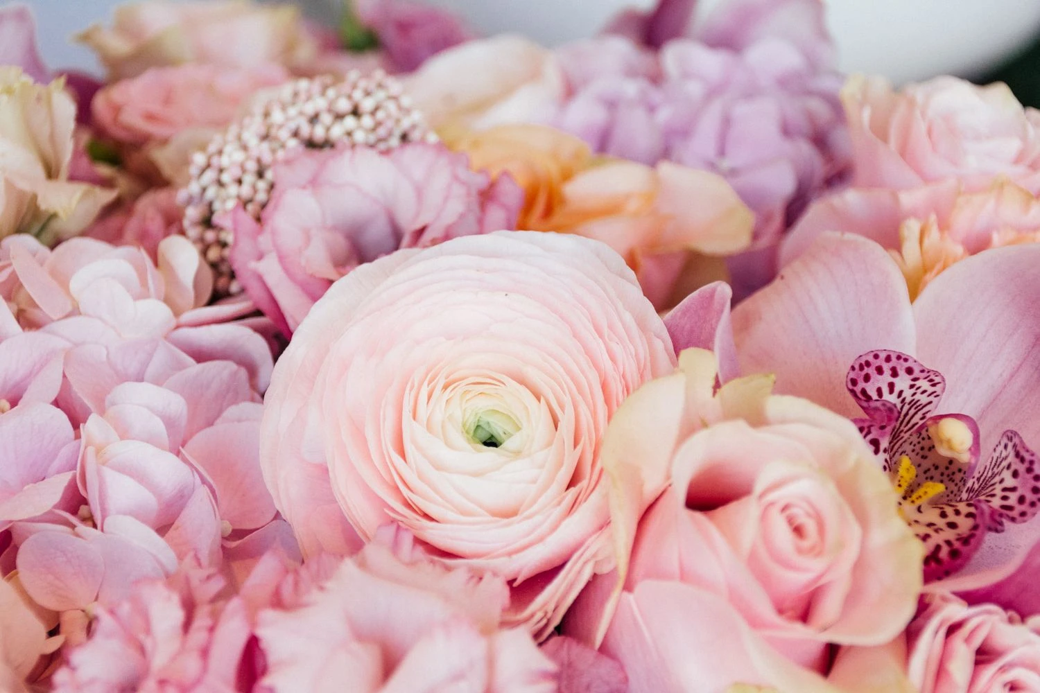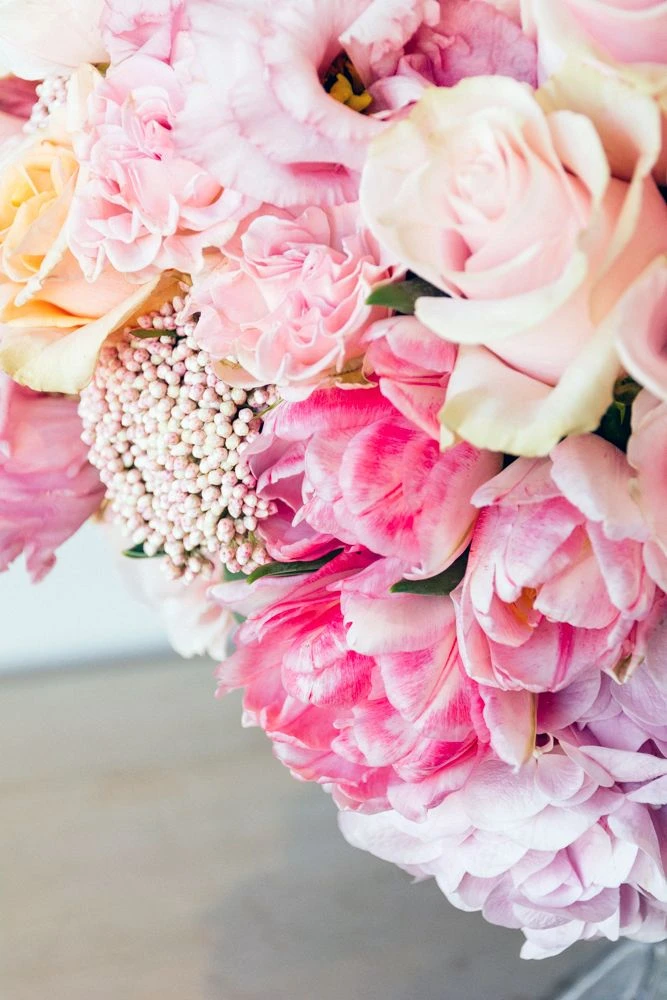Vivre la vie en rose with this sweet new design. Vibrant pink tulips, pink roses, pink ranunculus, and pink rice flower rest alongside clouds of pink hydrangea. Green stems strike the perfect contrast, visible through the 9.75″ tall clear crystal pedestal vase. This design stands at approximately 18″ tall overall.