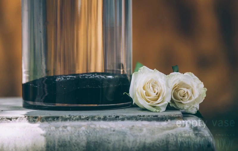 Modern and elegant, this arrangement consists of  150 radiant white South Ecuadorian Roses delicately wrapped with steel grass and resting in a 16”x8” cylinder glass vase with a base of decorative black gravel. This arrangement is approx. 32” tall. This breathtaking arrangement is available in different sizes upon request. Please call for all custom orders.