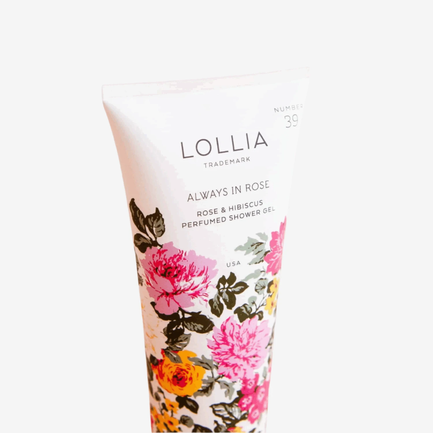 Indulge in the luxurious lather of Lollia’s Always in Rose Perfumed Shower Gel. Moisture-rich emollients of Shea Butter & Jojoba Oil smooth skin as lush botanical extracts condition and cleanse. Leaves skin refreshed and hydrated. An enchanting fragrance blend of blushing Rose, Hibiscus & warm Amber.