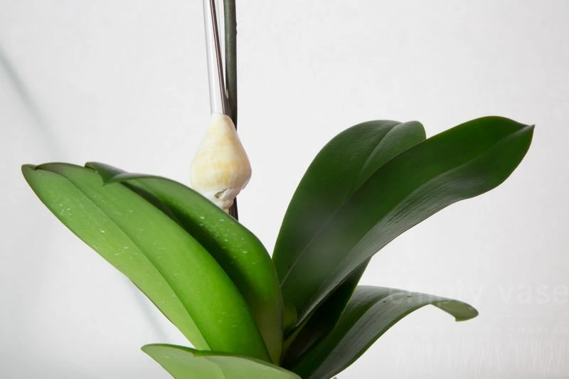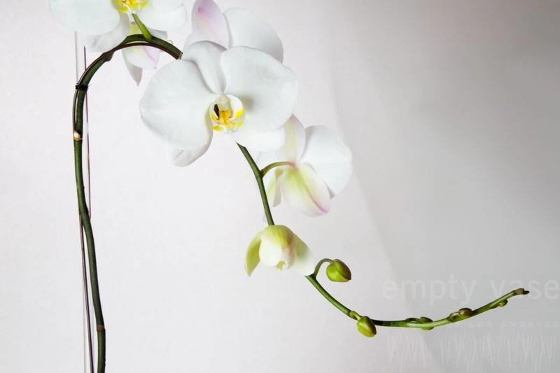 This stunning arrangement boasts luxury and infinite beauty. One stunning white phalaenopsis orchids sit high, cascading in different directions. Resting at the base of the 7” by 7” cylindrical glass vase, brown sand and seashells rest at the bottom. Overall this arrangement stands 31” tall and 16” wide.