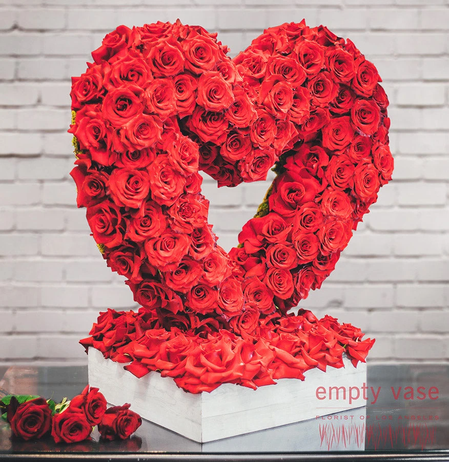 This breathtaking floral sculpture contains approx. gorgeous red roses paired with the contrasting green hues of moss. This arrangement is available in 3 sizes: Petite (22 inches tall), Midi( 28 inches tall) & Grande (38 inches tall).Â