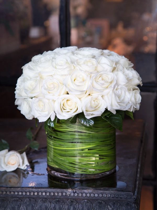 This elegant and soft arrangement boasts of a modern design composed with the most classic flower.