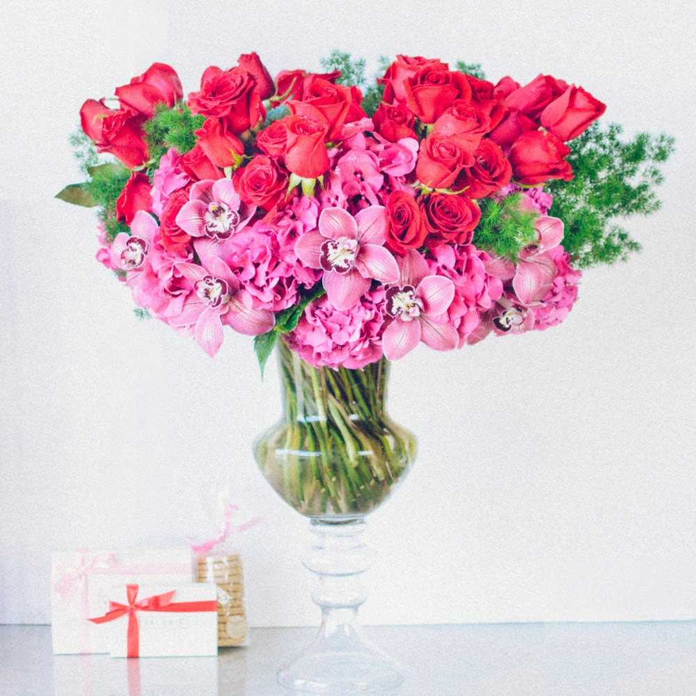 SKU: ZW1WD 5403714551963 Categories: FLOWERS, Signature Collection Tags: Cymbidium Orchid, Extra Large, Hot Pink, Hydrangea, Multicolor, Orchid, Pink, Red, Rose