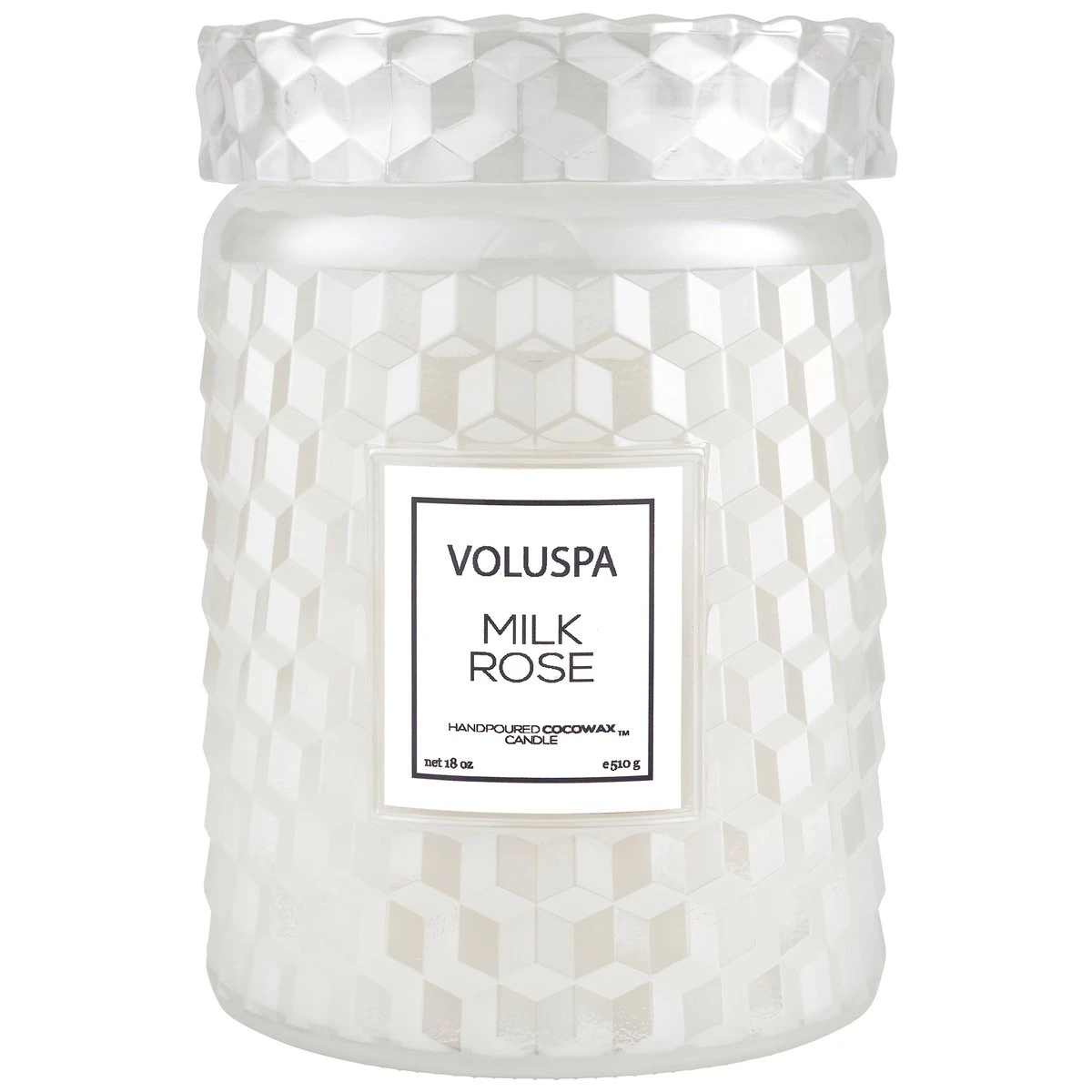 This Classic Candle is delicately sized for any space! The Roses Collection glass is textured with a classic geometric 3D cube pattern and colored to match the rose that served as fragrance and packaging inspiration.
