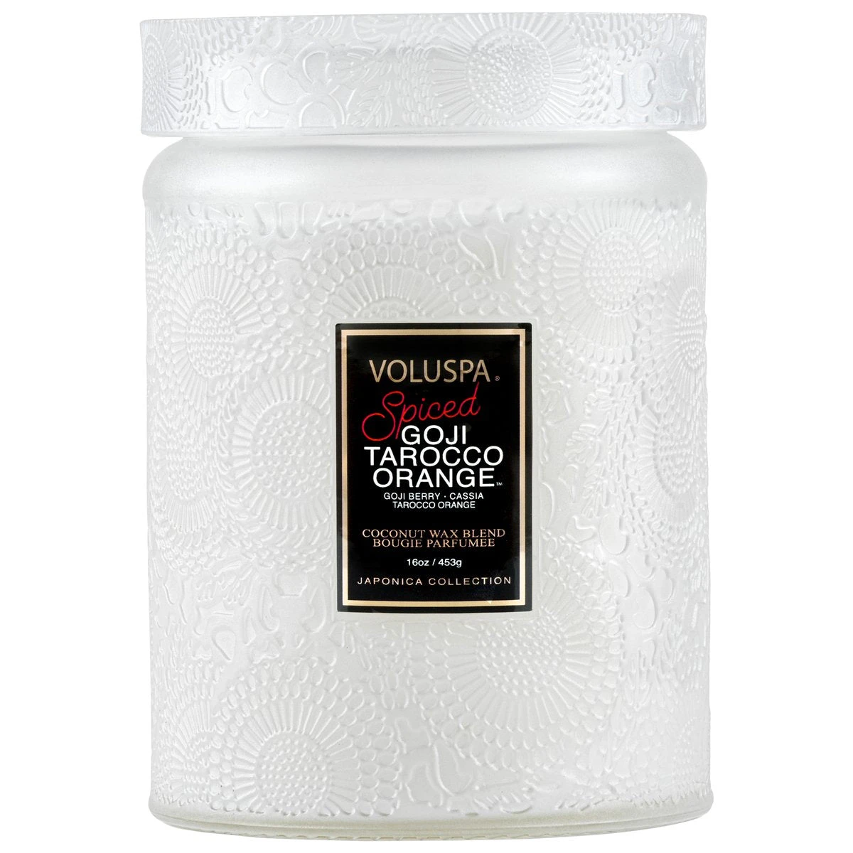A new twist on an old favorite. Welcome home for the holidays with our best-selling Goji Tarocco Orange fragrance. Spruced up with homey spices of Anise, Clove, and Cinnamon and packed into a frosted winter white glass.