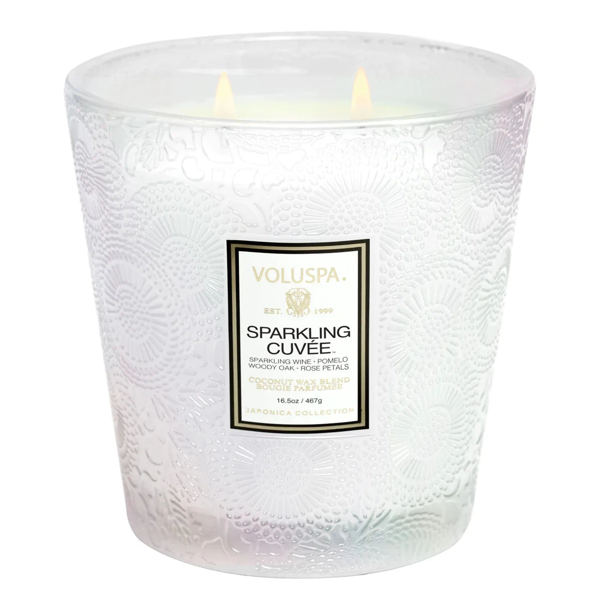 Pop a bottle of Voluspa’s finest blend, it’s time to celebrate! A mix of beautiful aromatic complexity, Sparkling Cuvée opens with vivacious fruit tones of Sparkling Wine, Pomelo and Red Currant. The effervescence of Sparkling Wine is the heart of the celebration, with bubbles cascading to the surface, dancing and mingling with juicy Nectarine and Bulgarian Rose Petals. A velvety, smooth finish of Woody Oak serves as the perfect stage for this aromatic affair. Raise a glass of Sparkling Cuvée, your olfactory aperitif for every unforgettable occasion.