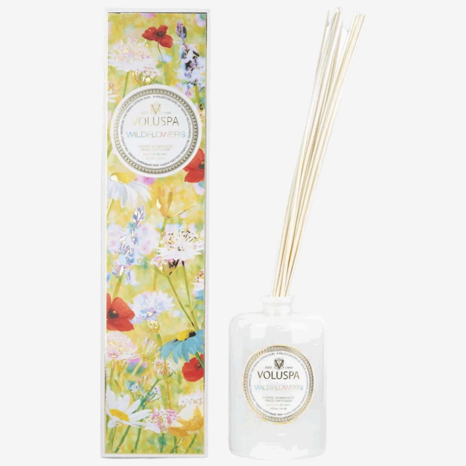 You’ve been called to dance among the wildflowers, losing yourself in the beauty of this unruly floral sea. Lightly pass your hand over a kaleidoscope of Native Wildflowers, blooming Golden Poppy, Ambrosia and springing Herbs; sugared by misty vapors of Blue Agave and delicately kissed by the rising Citron sun. Gently coax this fragrant super bloom of Voluspa’s Wildflowers.